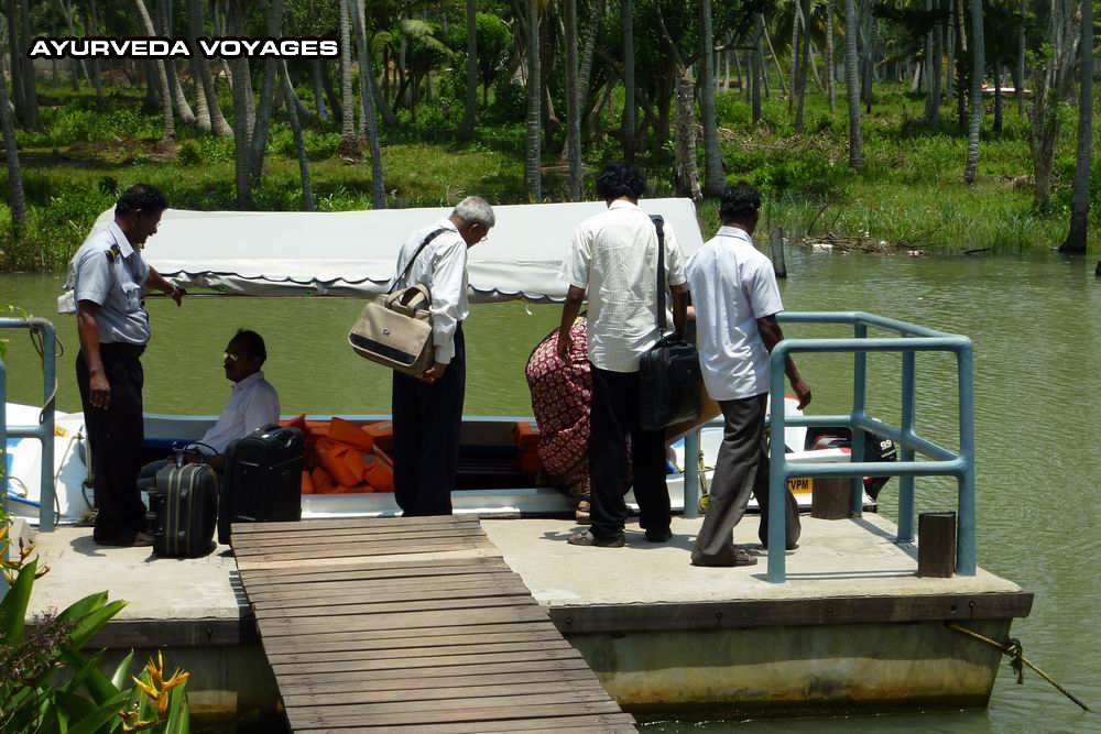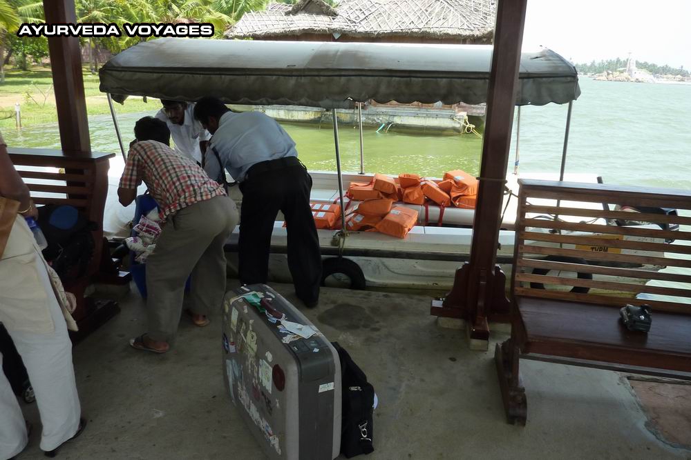Le Poovar Island Resort est au bord de lac, mais la partie ayurvédique est en retrait, donc à 5 bonnes minutes à pied de l'embarcadère, en traversant les jardins du resort.