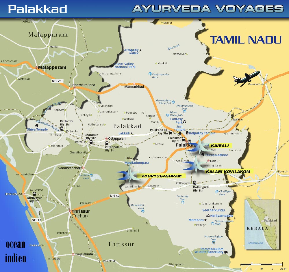 The city of Palakkad lies at the foot of the Western Ghats, on the border between Kerala and Tamilnadu. It is not only the granary of Kerala, but also a region that boasts a quality of life and unique traditions of its kind. The English name is Palghat. The name of Palakkad does not only refer to the city, but also to the district (a kind of department in Kerala state) The city is located not far from Palghat Gap, which is a gateway through the Ghats and connects the Tamil country to the east and the plains of Kerala.
