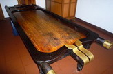 | La dhroni est une table de massage particulière qui permet de faire des soins à base d'huiles. Elle est légèrement creusée afin de recueillir celles-ci après utilisation.